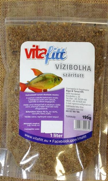 Vitafitt szárított vízibolha, vagyis szárítva fagyasztással (liofilizálással) tartósított Daphnia (vízibolha).