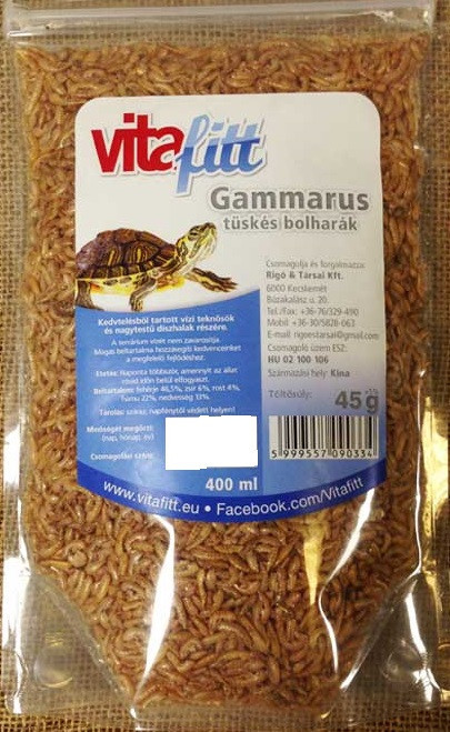 Vitafitt tüskés bolharák: szárítva fagyasztással (liofilizálással) tartósított Gammarus rák. Természetes eleség nagytestű halak és víziteknősök számára.